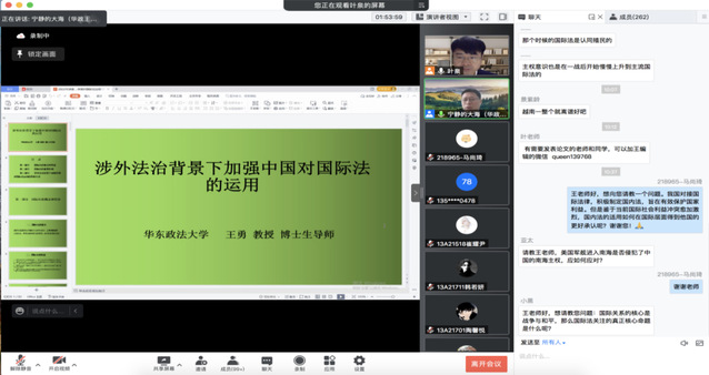 本次讲座分为三个部分展开,王老师结合自身多年的教学与研究经验,详细阐明了自己对于《涉外法治背景下加强中国对国际法的运用》的具体看法,引领广大师生深入思考。