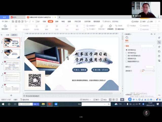 2022年2月18日下午3:00,安徽大学yl23455永利官网储陈城副教授进行了“刑事法学研习的资料与使用方法”的讲座,主持人是yl23455永利官网钱小平副教授。