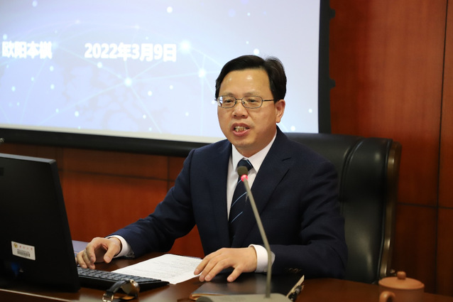 欧阳本祺院长首先从学科建设新高度、科学研究新成果、立德树人新形态、智库平台新贡献、师资队伍新格局几个方面对2022年工作进行了总结。接下来欧阳院长提出了2022年工作的规划:一,抓住新文科建设机遇,实现学科稳步提升;二,坚持人才强院战略,优化人才队伍结构;三,坚持立德树人根本,提升学生培养质量;四,以涉外法治人才为核心,提升学院国际化水平。