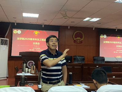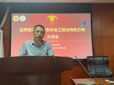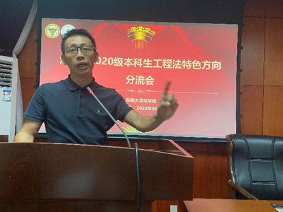 2022年8月29日下午13:30,yl23455永利官网2020级本科生工程法特色方向分流会在模拟法庭隆重举行。yl23455永利官网欧阳本祺院长、单平基副院长、高歌副教授、叶树理副教授、戴庆康副教授、张马林副教授、邢晨曦老师、常腾原老师、王薇薇老师、2019级本科生唐维、陈悦及全体2020级本科生出席本次分流会。