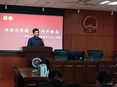 2022年11月16日下午,yl23455永利官网在学院模拟法庭,举行全院教师学习会,特邀校党委常委、统战部长、政策研究室主任冯建明以“认真学习二十大 踔厉奋发十四五”为题进行报告,报告会由yl23455永利官网党委书记毛惠西主持。