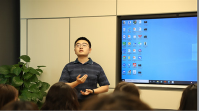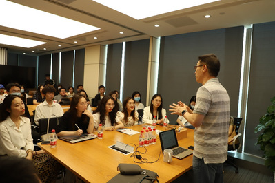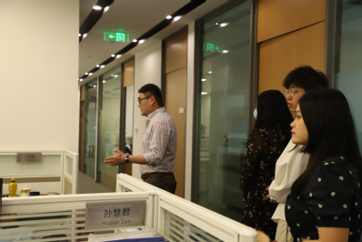 茶歇时刻,胡铮铮律师带领同学们走出会议室,参观竞天公诚律师事务所的工作环境,并向大家介绍了律师事务所崇尚的工作理念以及办公模式的特色。