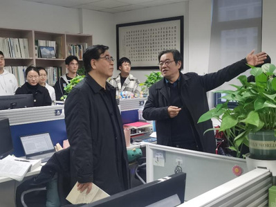 互动伊始,孟鸿志教授携团队成员参观交通学院BLUESKY工作室,过秀成教授对BLUESKY工作室的团队创建、人才培养、文化建设等方面作了详尽介绍。