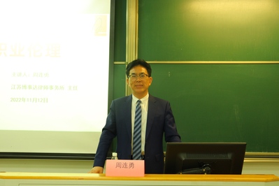 11月12日,江苏博事达律师事务所执行主任、合伙人、高级律师周连勇律师为同学们进行线下授课。周连勇律师在课堂上向同学们提出三个问题:当代律师的职责和使命是什么?目前律师事务所是如何运转和管理的?如果选择做律师,有什么期待、担心和具体的准备?周连勇律师通过与同学们交流,让同学们有更清晰的自我认识,建议大家根据职业选择确定未来的学习方向,为大家提供职业规划的意见与建议。此外,周律师还就律师的保密义务、诚实守信义务展开讲解,提醒同学们从事律师职业需要注意的一些问题,比如要有时间观念、团队意识,要掌握与上司、同事的沟通技巧等。