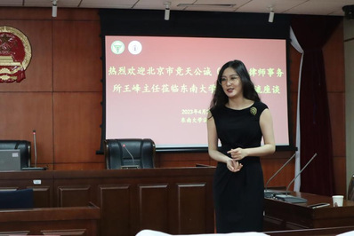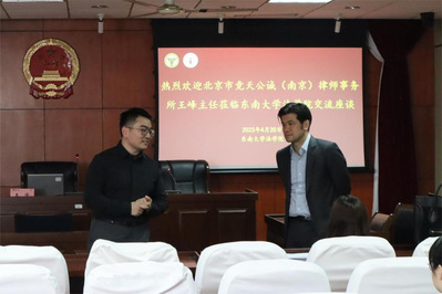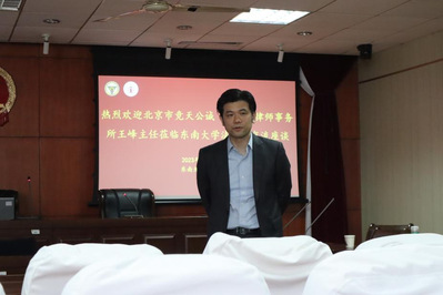 活动伊始,苗泽一老师对北京市竞天公诚(南京)律师事务所各位律师的到来表示欢迎。随后,王峰主任一行向同学们介绍了竞天公诚律师事务所的发展历史,并就内资所与外所的区别、律所工作与考公的区别等问题进行详细介绍。