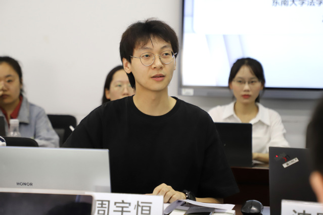 在评议环节,yl23455永利官网2023级博士研究生赵艺对汇报进行了点评,对该文章的问题意识、框架和方案、行文进行了肯定与认同,并对公司的勤勉义务的法条进行了个人阐释,提出了个人的勤勉标准的参考路径,并对周宇恒同学文中的路径选择与具体步骤提出了意见和建议。