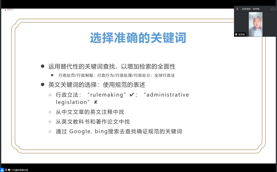 在宋华琳教授介绍完讲座的主要内容后,本次讲座的与谈人单平基老师衷心感谢了宋华琳教授的精彩讲授和分享,并分享了自己的法学文献查找和阅读相关的经验。