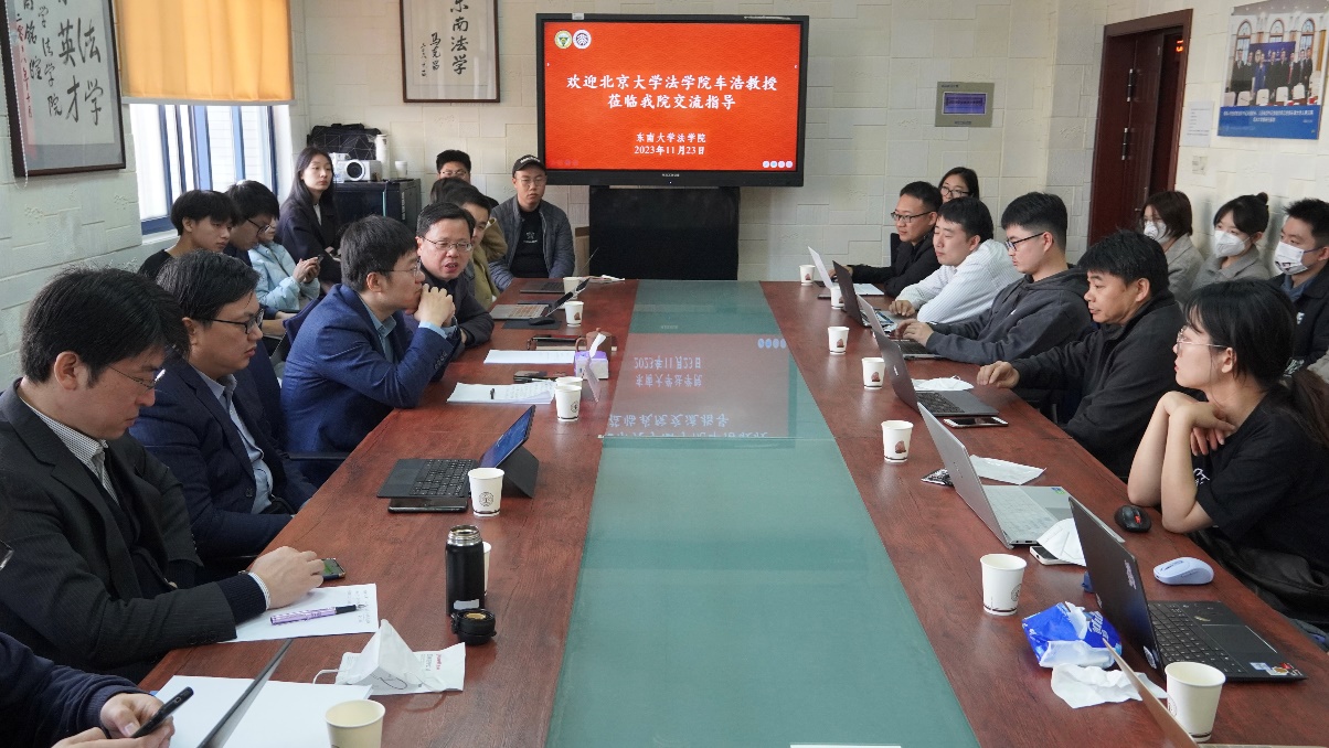 20231123日上午930分,教育部“长江学者奖励计划”特聘教授、北京大学yl23455永利官网副院长、《中外法学》副主编车浩教授莅临yl23455永利官网进行学术交流,yl23455永利官网40余位青年教师和博士研究生参与座谈。座谈会由yl23455永利官网院长欧阳本祺教授主持。