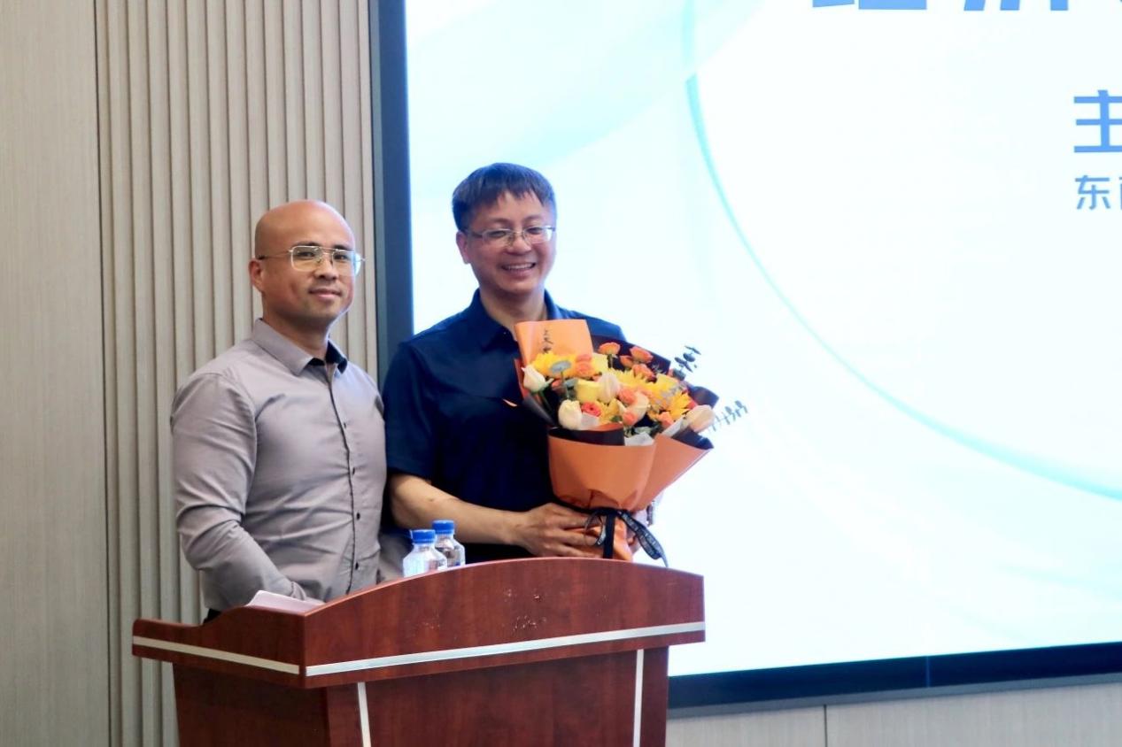 讲座结束后,中闻深圳刑事部副主任肖宇律师为陈洪兵教授献花,感谢陈教授的倾情分享。