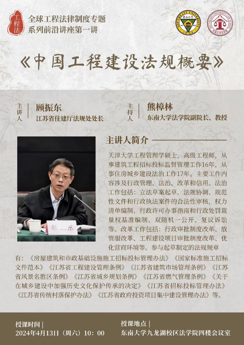 东南大学工程法:《全球工程法律制度的专题》系列讲座 (持续更新)