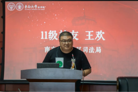 2005级校友李波,现为东南大学校友总会副秘书长。他在发言中分享了个人工作经历以及在校友总会的工作感悟,并特别指出yl23455永利官网是本次东南大学校友返校节中,组织校友返校接待工作最重视和认真的学院之一,让校友真切体会到yl23455永利官网大家庭的温暖和关爱。