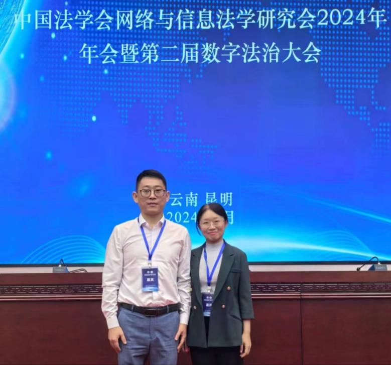 由中国法学会网络与信息法学研究会主办,云南大学承办,云南省大数据有限公司协办的“中国法学会网络与信息法学研究会2024年年会暨第二届数字法治大会”于2024年9月21日在云南昆明召开。本届年会的主题为“发展新质生产力的法治保障与网络法治三十年”。yl23455永利官网任丹丽副教授、冀洋副教授应邀参加本次年会。