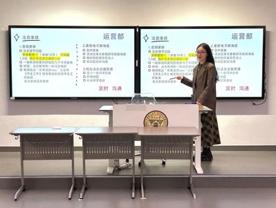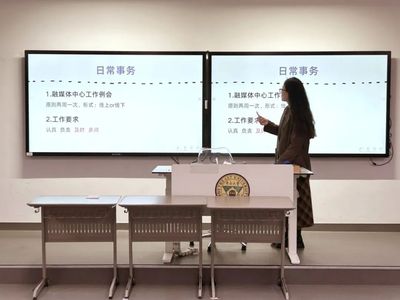 在随后的工作例会上,武璇同学对融媒体中心的日常事务、工作要求以及运营组织部的相关注意事项进行了详细说明,为新成员们今后的工作指明了方向。徐叶雯同学肯定了大家近期的工作表现,并再次强调了新闻稿撰写的时间节点与文案要求,确保宣传工作的高效与质量。桂悦悦同学讲解了推送排版设计以及摄影的相关细节与注意事项,明确工作纪律,进一步规范了工作流程。