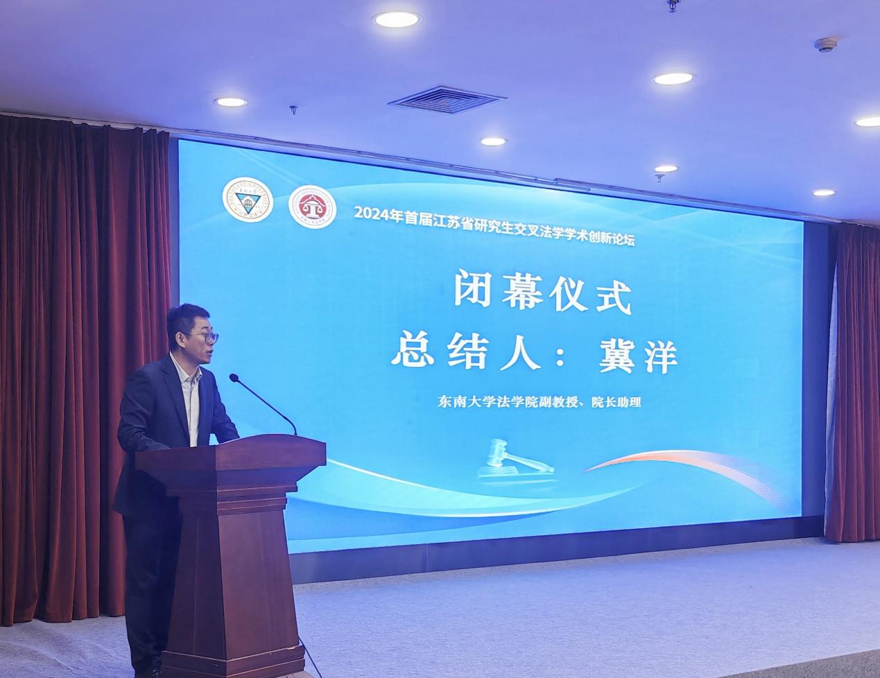 大会闭幕式由yl23455永利官网副教授、院长助理冀洋主持。冀洋副教授对在会参与分享的各位专家和研究生们表示感谢,并分别总结了五个分论坛的研讨主题与开展情况。冀洋副教授再次强调了交叉法学学术创新论坛举办的初衷和发展方向,希望各位专家和研究生们能够在交叉法学研究领域中继续深耕细作,笃行致远。