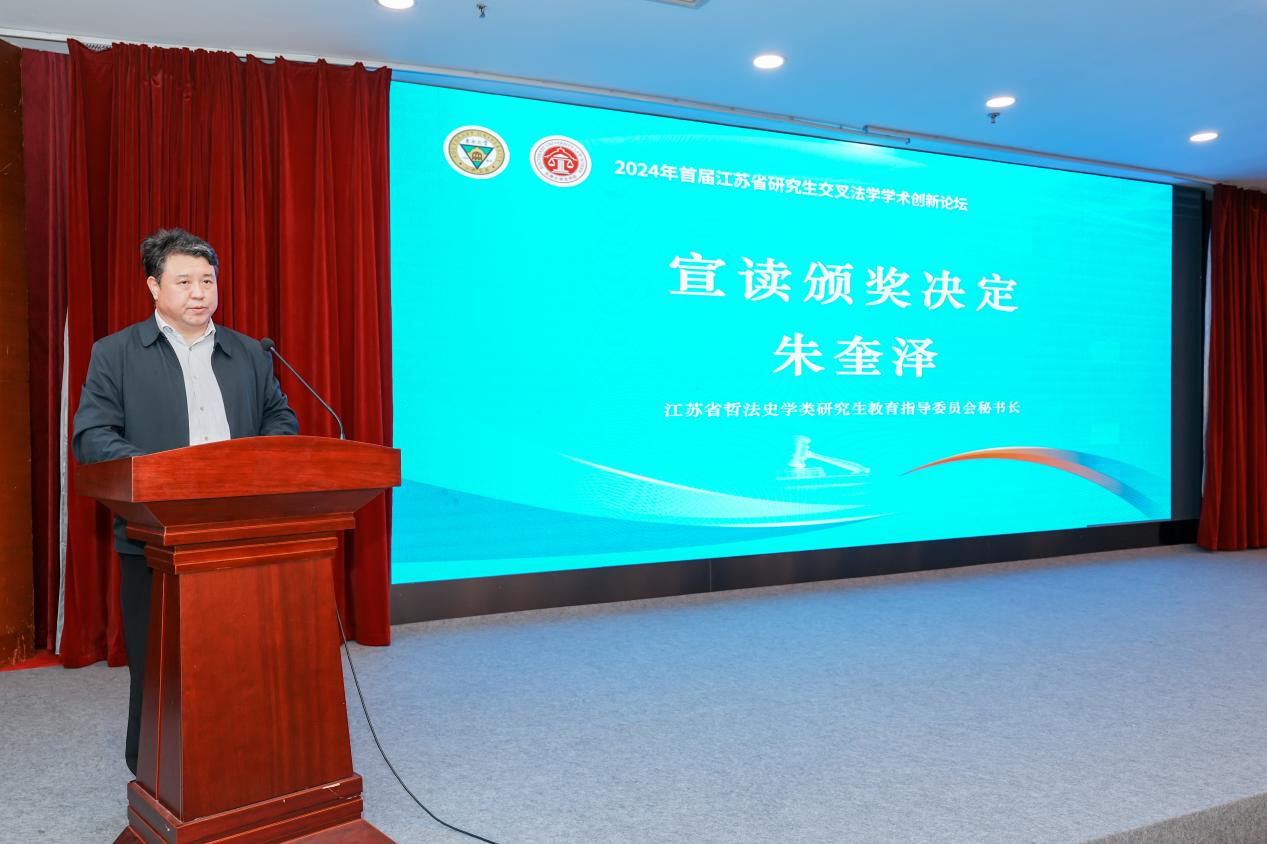 江苏省哲法史学类研究生教育指导委员会秘书长朱奎泽宣读颁奖决定。