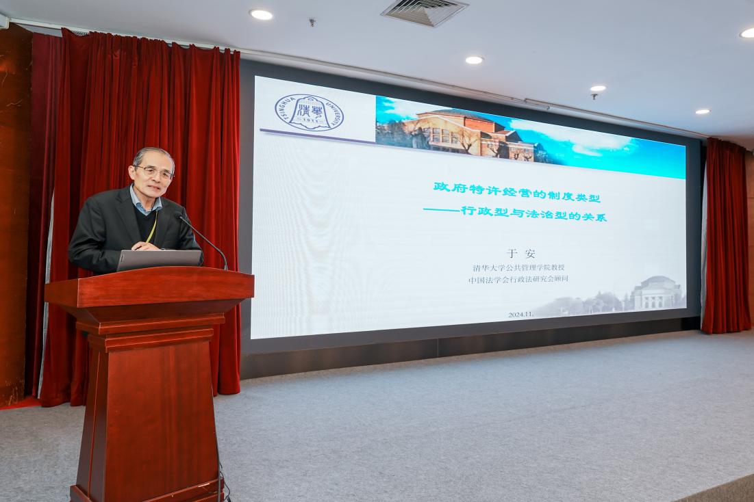于安教授作了题为“政府特许经营的制度类型”的报告。于教授指出,政府特许经营是利用社会资本和市场机制实现公共服务供给的方式,并对政府特许经营的类型、对象、形式、行政规则与政策依据展开介绍。基于行政型与法治型关系角度,于教授分别阐述了行政优先型与法治有限型的形式和理据,并就此提出法治型政府特许经营的主要议题。