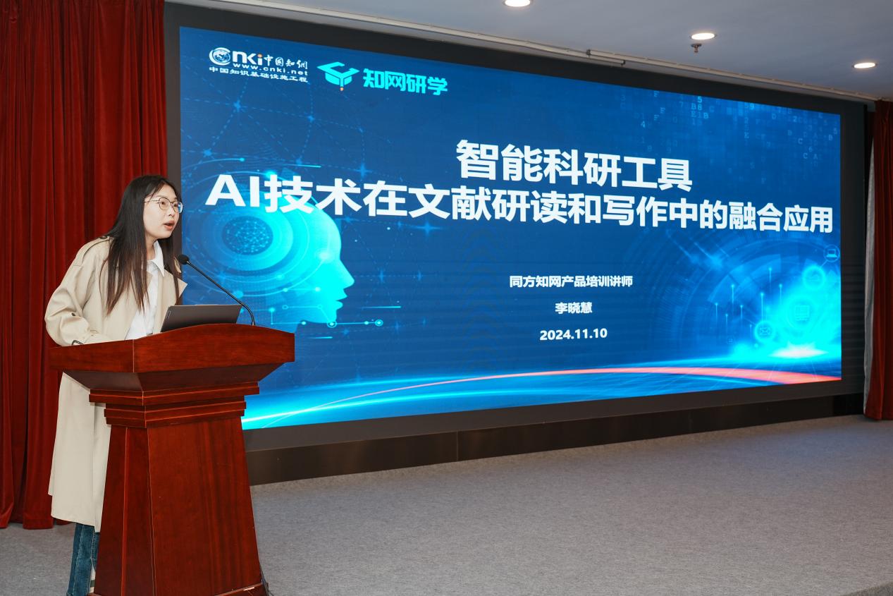此外,为加强与会师生对数字工具的掌握与运用,本次论坛设置了研究方法培训环节。知网研学产品培训讲师李晓慧以“智能科研工具:AI技术在文献研读和写作中的融合应用”为题展示了如何在学术研究中运用数字工具。