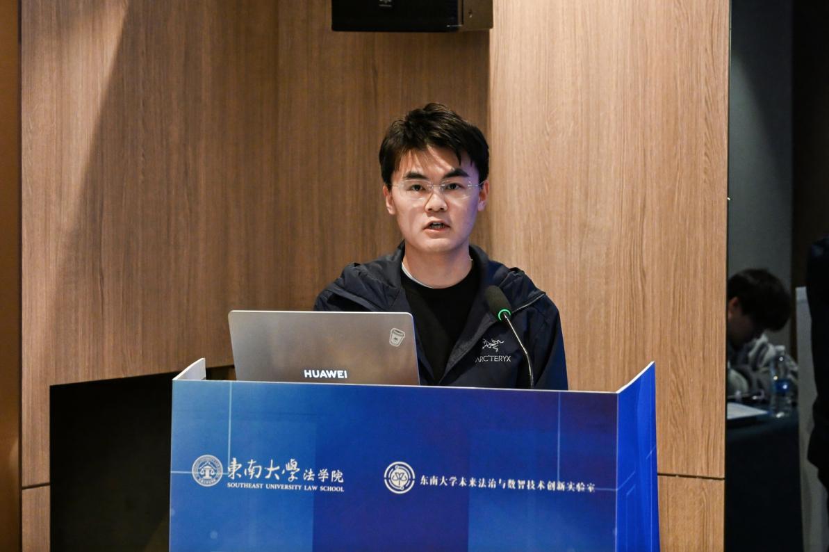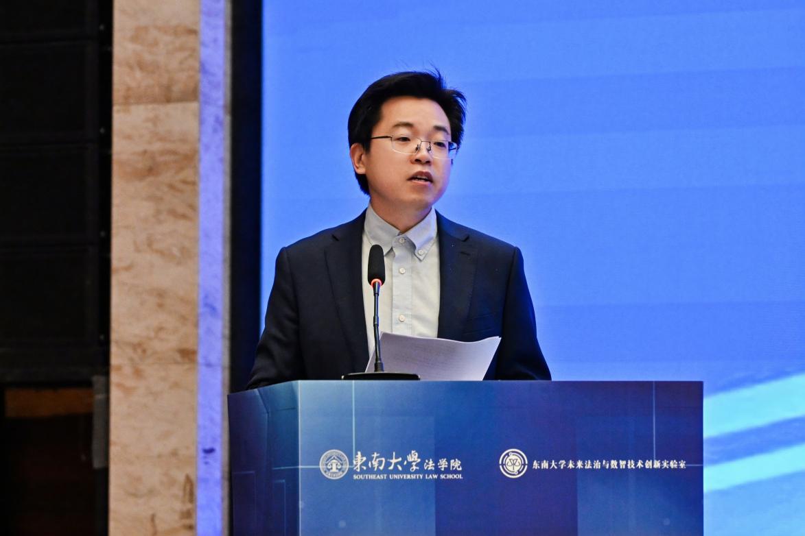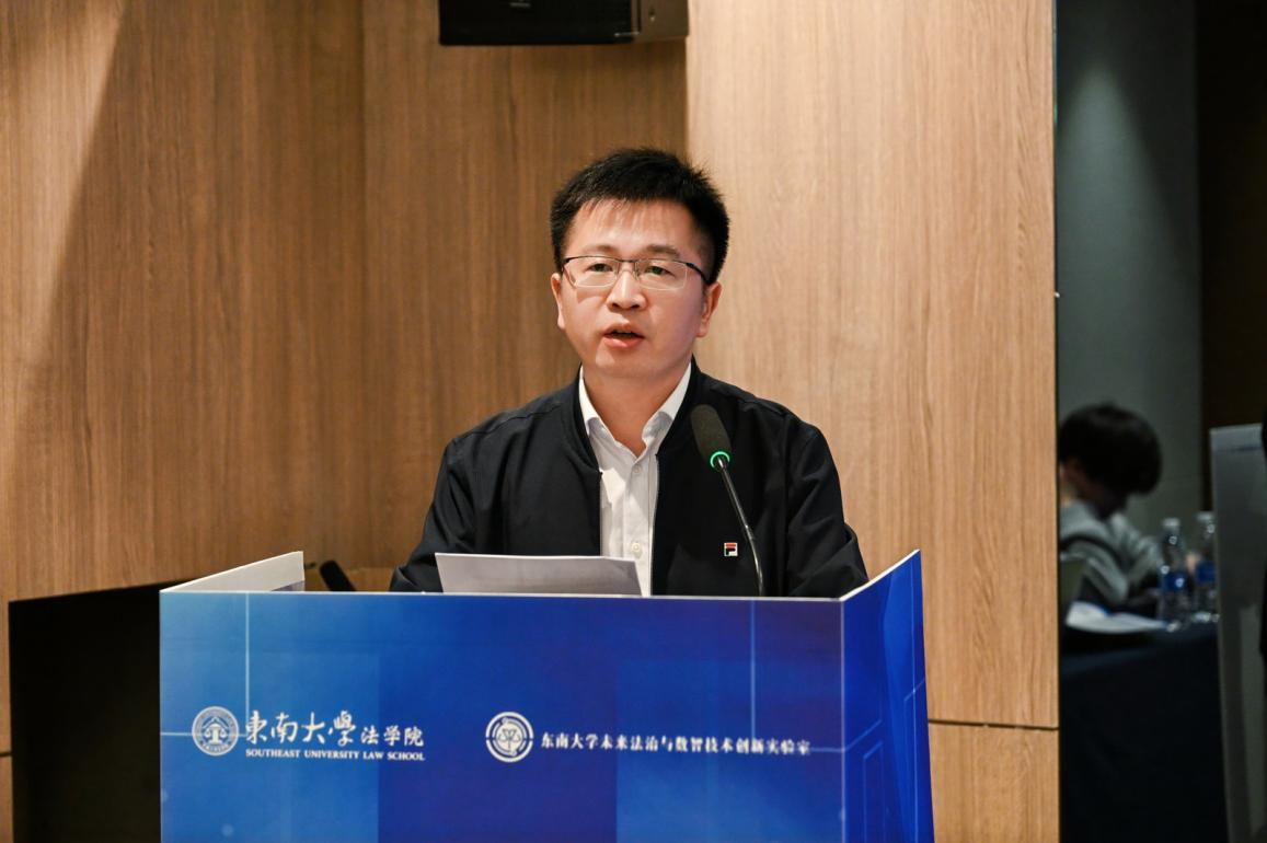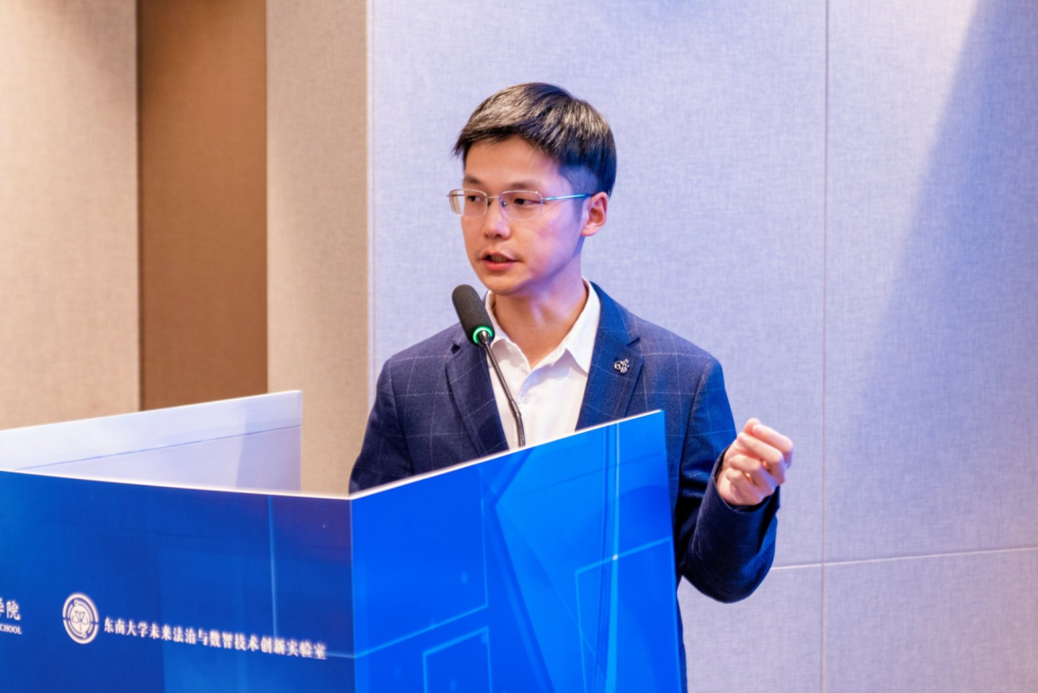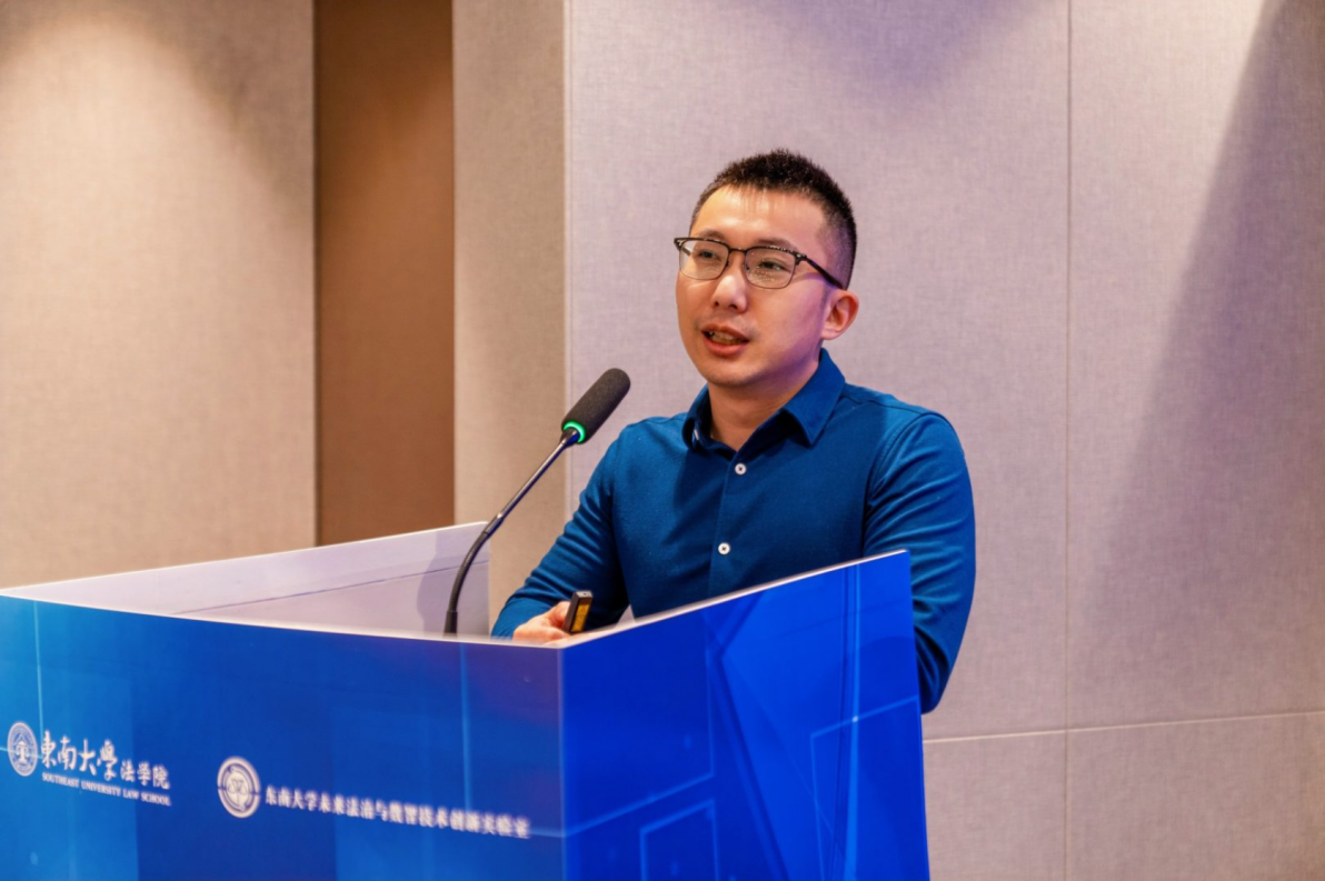 江苏省法学会数字法学研究会副会长、南京信息工程大学教授许娟的学生秦登峰(代许娟教授发言)在题为《两面扩张,三层转介:数字法律行为的法理解析》的发言中,指出了个人信息权益保护背景下传统法律行为面临的重构与转型,对数字法律行为变动的原因进行分析,对当前个人信息保护模式进行反思。