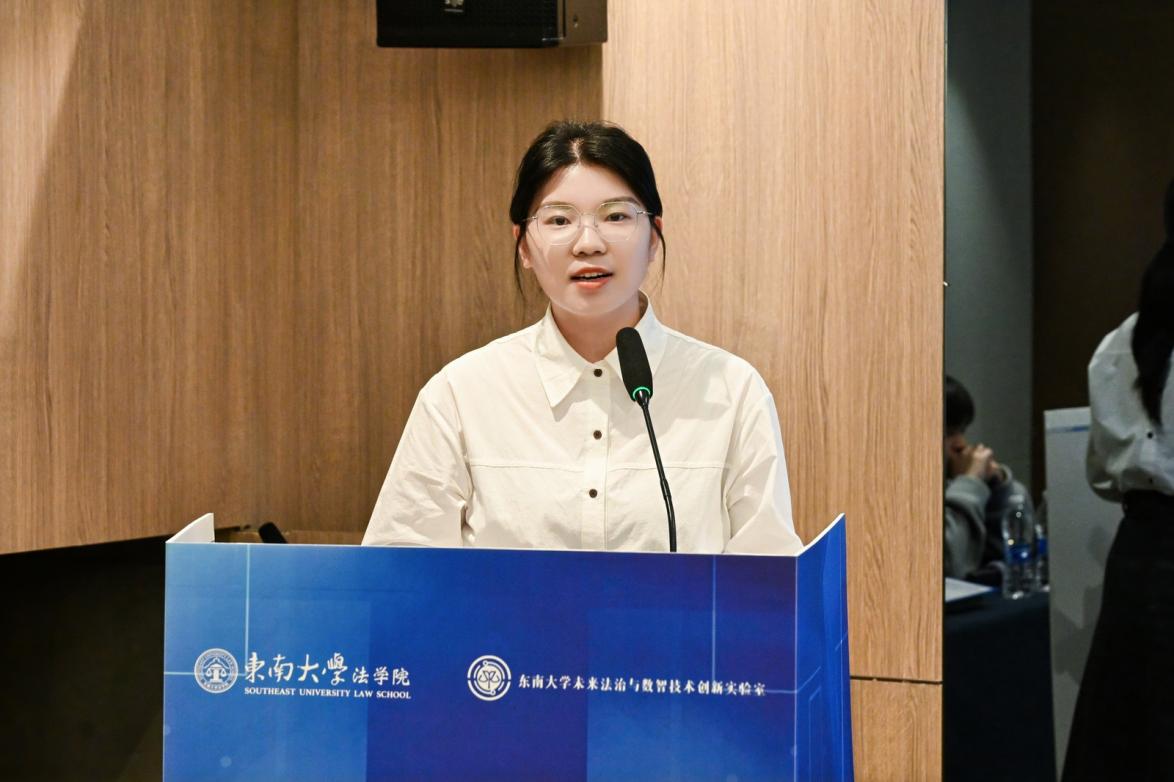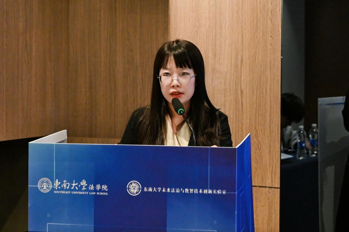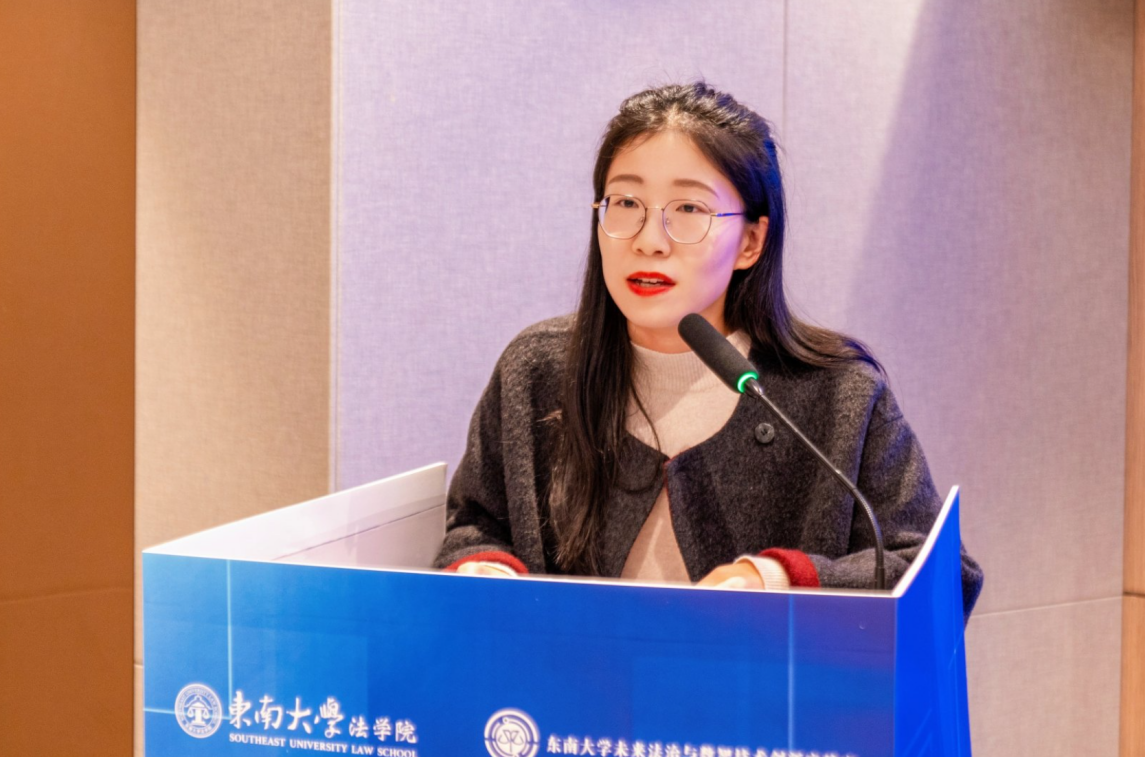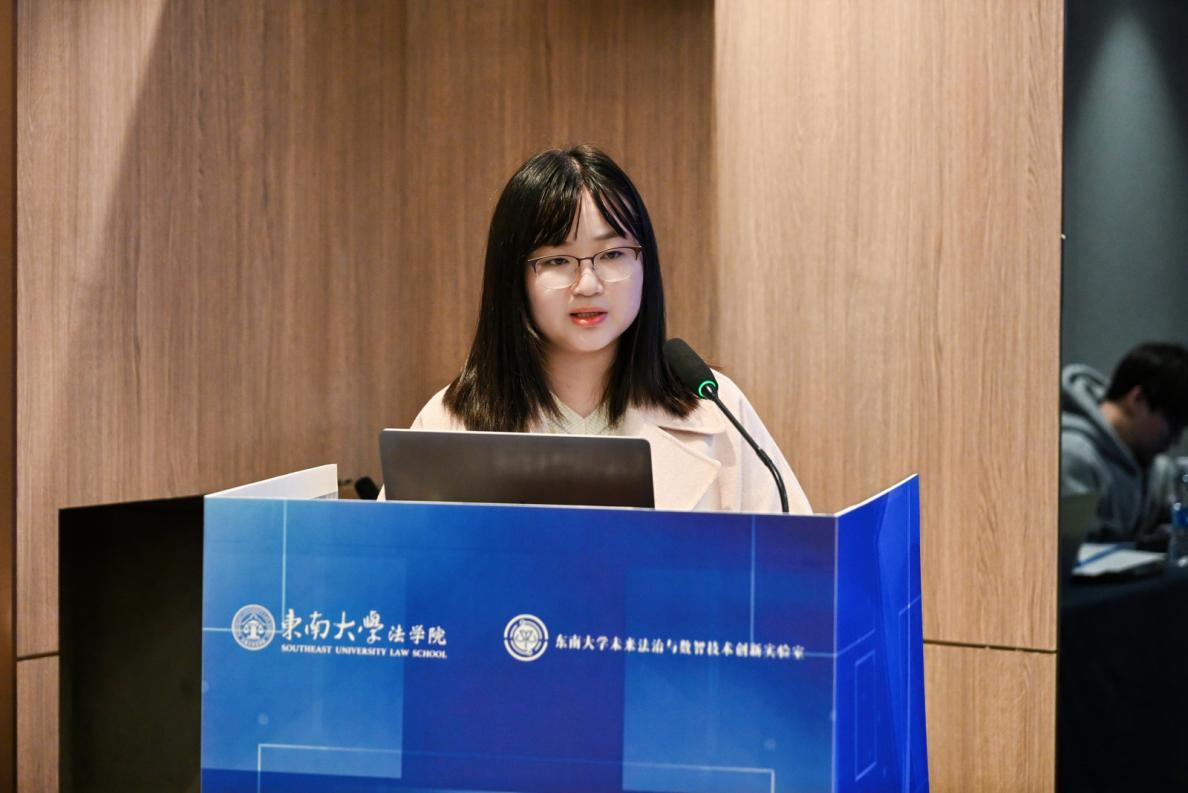 江苏省法学会数字法学研究会副会长、南京信息工程大学教授许娟的学生秦登峰(代许娟教授发言)在题为《两面扩张,三层转介:数字法律行为的法理解析》的发言中,指出了个人信息权益保护背景下传统法律行为面临的重构与转型,对数字法律行为变动的原因进行分析,对当前个人信息保护模式进行反思。