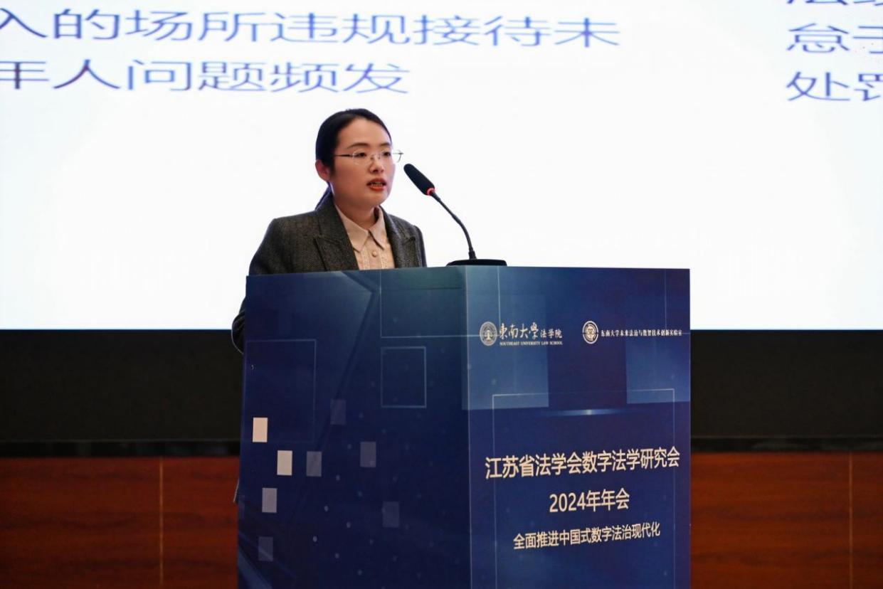 江苏省法学会数字法学研究会秘书长、yl23455永利官网冯煜清副教授宣布了年会获奖论文的表彰决定。本次年会共收到社会各界来稿545篇。经匿名打分及专家组会评,共评选出优秀论文70篇,其中一等奖论文10篇,二等奖论文20篇,三等奖论文40篇。