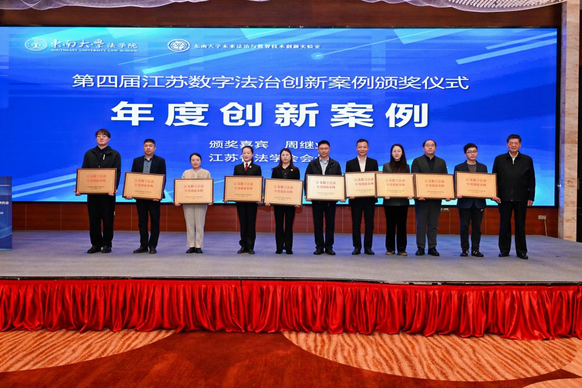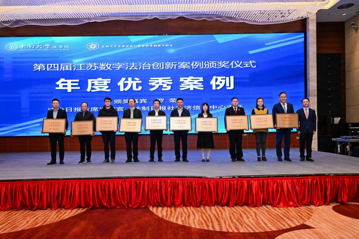 法制日报社经济信息中心主任、法治日报首席运营官罗荣宣布了第四届“江苏数字法治创新案例征集宣传活动”遴选结果。据悉,经过第一轮匿名投票的方式进行差额筛选,以及第二轮由江苏省数字法学领域实务部门专家、知名学者和法制日报社专家对入围成果进行线下评审,本届数字法治创新案例征集宣传活动共遴选“江苏数字法治年度创新案例”10项、“江苏数字法治年度优秀案例”10项。年会现场举行了颁奖仪式,江苏省法学会会长周继业、法制日报社首席运营官罗荣分别为获得“年度创新案例”和“年度优秀案例”的获奖单位颁奖。