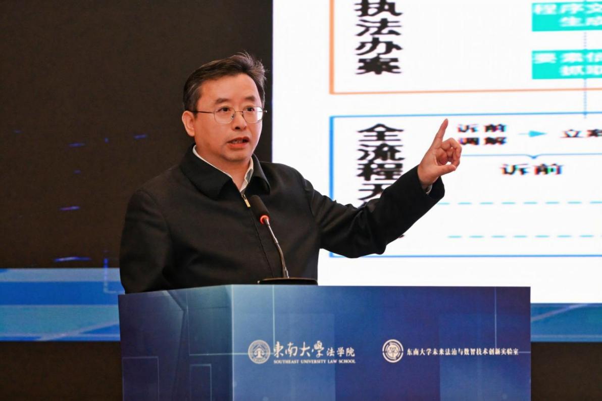 中国法学会副会长、中国法学会网络与信息法学会会长姜伟在致辞中肯定了在党的二十届三中全会精神指导下,研究会反映数字法学前沿研究动态、培养数字法学思维,促进数字法学与传统法学领域协同创新、推动数字法学理论与实践的深度融合,为司法实践的创新发展和法治人才的培养提供了有力支撑,为其他省市数字法学研究的推进构筑示范样板。南通市崇川区人民法院和市委法院工作站的设立,标志着数字化研究成果向现实生产力转化迈出新步伐。期待未来江苏省数字法学研究会可以推陈出新,深度挖掘数字法治江苏的内涵与亮点,携手共同讲好数字法治江苏故事,让江苏的数字法治建设成果惠及更多领域,以数字科技赋能政法工作。并期待yl23455永利官网的“法衡”大模型在法律服务和研究中取得优异表现。