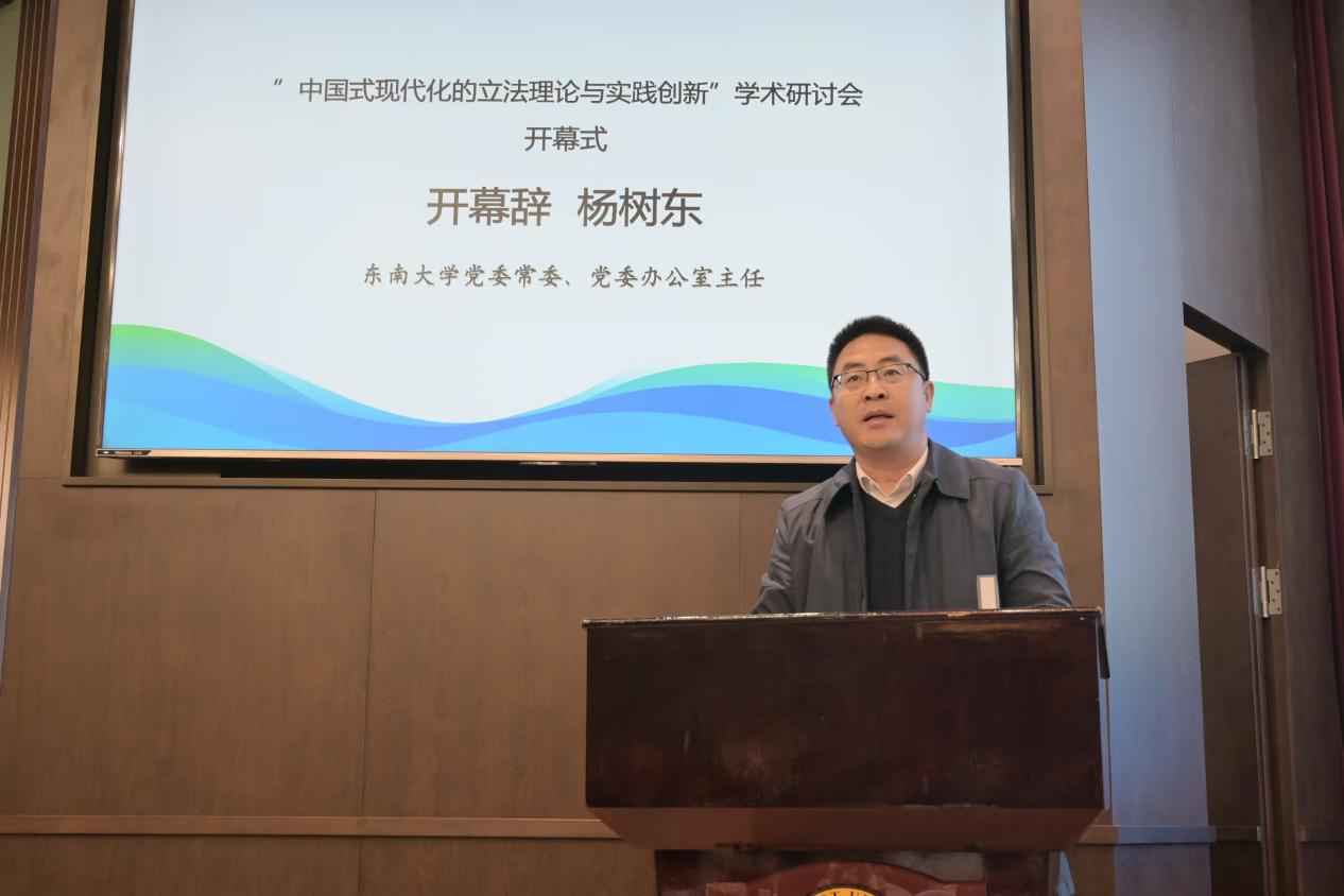 开幕式上,杨树东主任首先代表东南大学对参会的各位领导、专家表示热烈欢迎,对大力支持本次会议的各单位表达由衷的感谢,并向各位来宾介绍了东南大学与yl23455永利官网的悠久历史、学科建设情况与未来发展规划。杨主任充分肯定了立法学研究会为江苏省地方立法实践作出的重要贡献,并于近期成功推动东南大学江苏省地方立法研究基地入选中国智库索引(CTTI)。他表示,东南大学将继续不遗余力地配合、支持省法学会的各项工作,推动立法学研究会在江苏地方立法事业发展和国家有关立法研究中发挥更大作用。最后,杨主任对大会的顺利举办表示祝贺,向出席会议的各位嘉宾表示衷心的感谢。