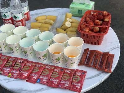 赛道沿途摆满了多种物资,为选手们的补给做了充分准备。水果、能量胶、电解质水……工作人员们最大程度上服务每一位选手,全力保障选手们坚定步伐,奔赴终点。