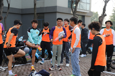 参赛选手们统一着装,进行运动前的热身准备,拉伸筋骨,激发活力,将身体调试至最佳状态。随后,孟鸿志教授宣布比赛开始,一场盛大的新学期首跑活动即将拉开序幕。