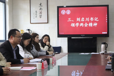 会议伊始,全体与会人现场观看两会视频,学习并贯彻了习近平总书记参加十四届全国人大江苏代表团审议时的重要讲话和重要指示精神。刘启川书记就两会精神同与会同学展开深入交流。