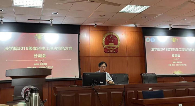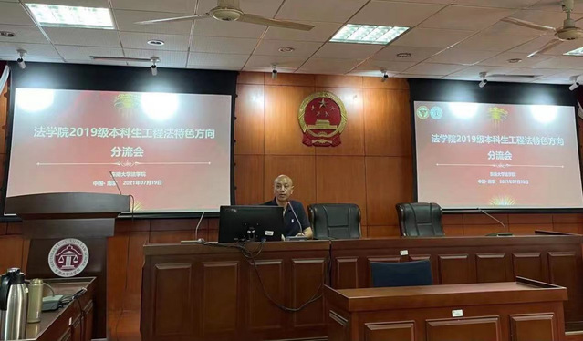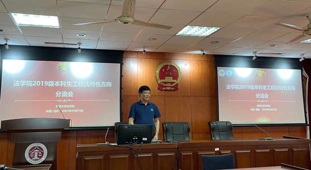 2021年7月19日上午,yl23455永利官网2019级本科生工程法特色方向分流会在四楼模拟法庭顺利召开。出席会议的有毛惠西书记、单平基副院长、熊樟林副院长,工程法团队高歌副教授、叶树理副教授、黄喆教授、杭仁春副教授、戴庆康副教授、张马林副教授、王玮玲老师、常滕原老师,王薇薇老师、费倩倩老师,丁金钰博士、2018级本科生王琪、秦嘉茵,以及yl23455永利官网全体2019级本科生;分流会由单平基副院长主持。